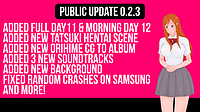 - December 02, 2023 by Real2#3D, #Adult, #Anime, #Dating Sim, #Eroge, #Erotic, #Hentai, #NSFW, #Porn, #sexAfter the main release, the primary issue was with the Android version, specifically the game freezing before the appearance of the character. After numerous attempts and tests, we decided to remove t... Continue reading